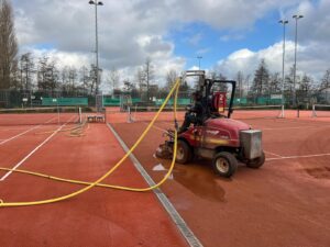 Met het nieuwe tennisseizoen in aantocht wordt er weer veel onderhoud gepleegd. Aan alle type tennisbanen, maar ook de padel- en atletiekbanen zijn weer aan de beurt. Bij T.C. IJbaanpad in Amsterdam hebben we 12 Topclay-tennisbanen gereinigd en voorzien van een nieuwe gravellaag. Ook de nodige hardcourtbanen staan op de planning. Kijk ook op onze onderhoudspagina. Wil je meegaan in de planning of een automatisch onderhoudscontract? Stuur dan even een mailtje dan nemen we snel contact met je op. Op naar een mooi, nieuw seizoen!